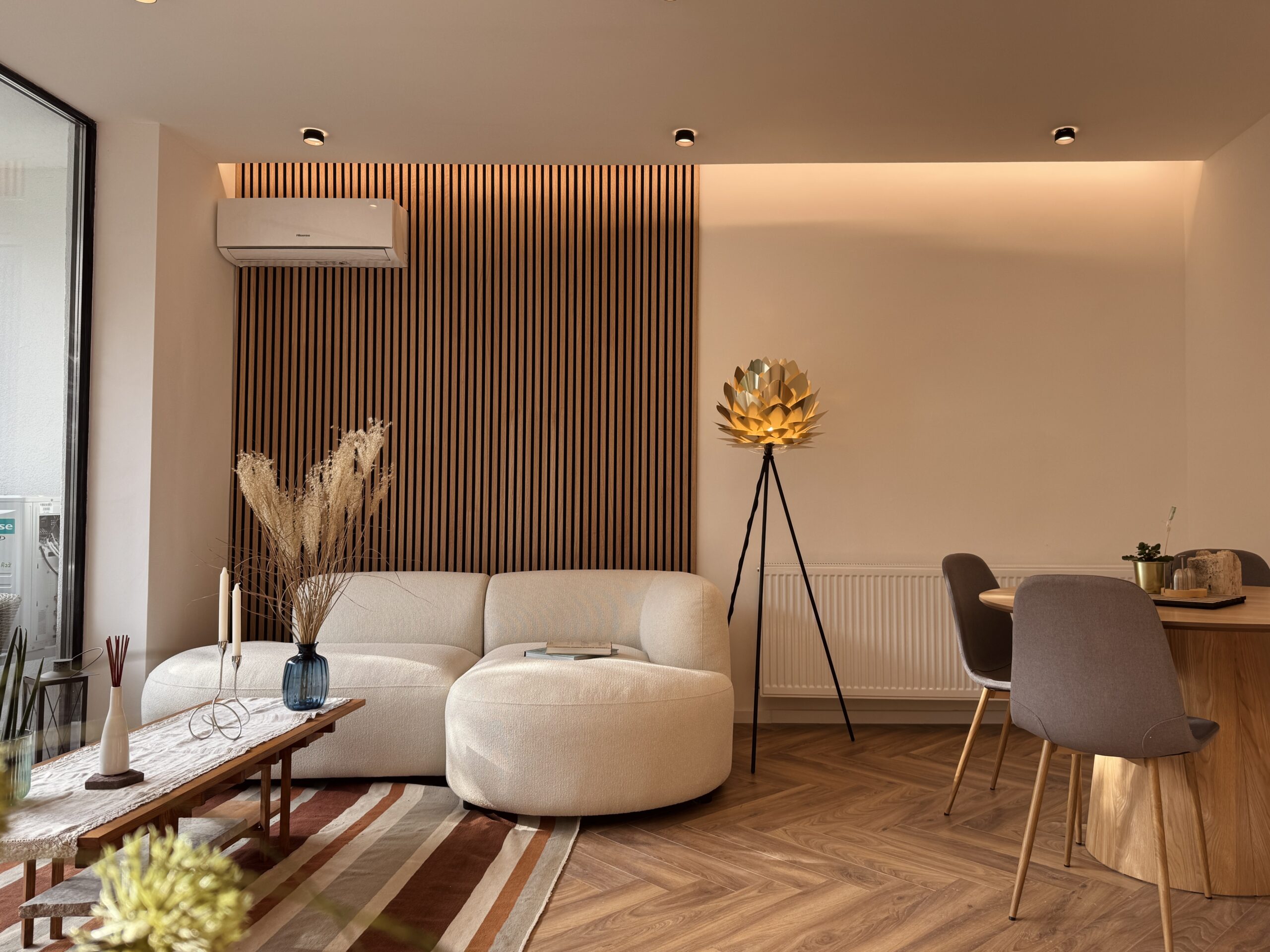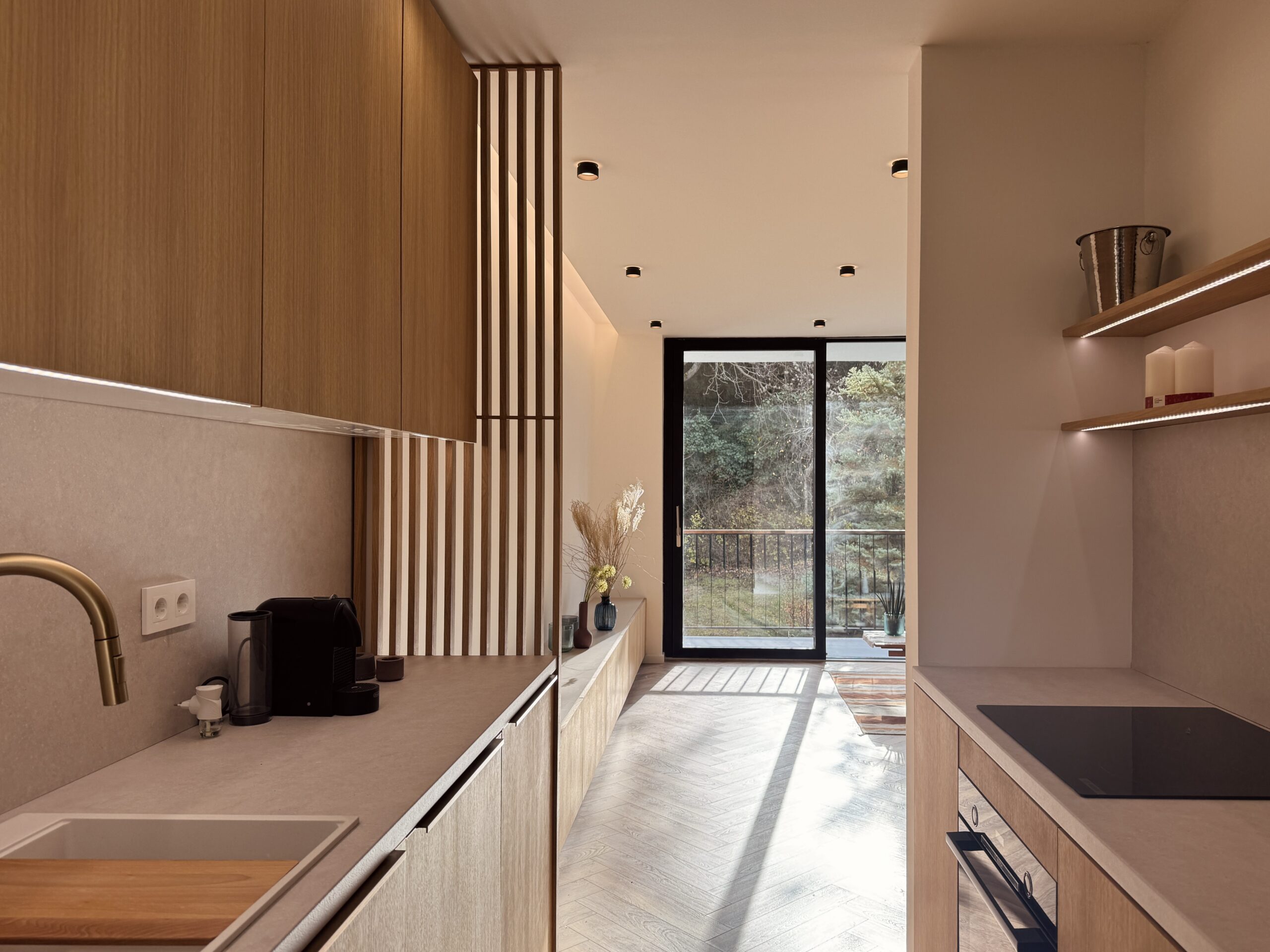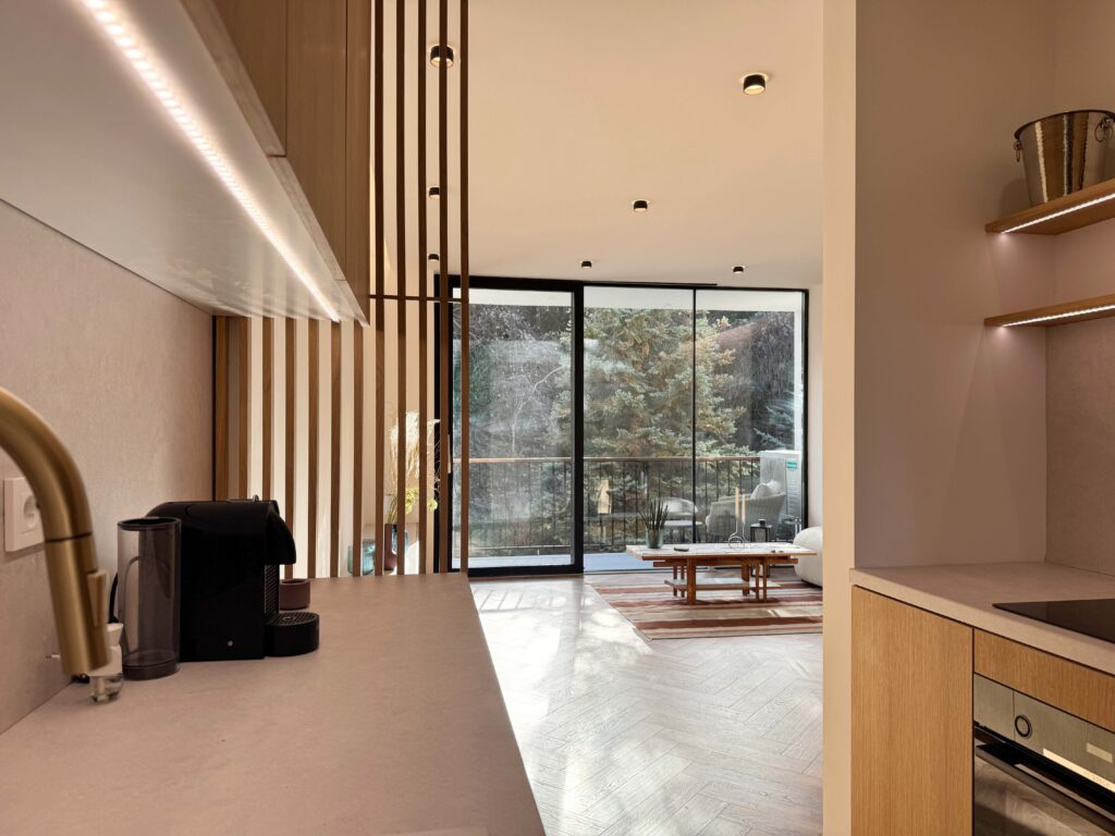 The project started with the reorganisation of an existing apartment, where space and furniture evolved together rather than as separate layers. The design process remained unified from architectural concept to detailing, allowing for consistency throughout.